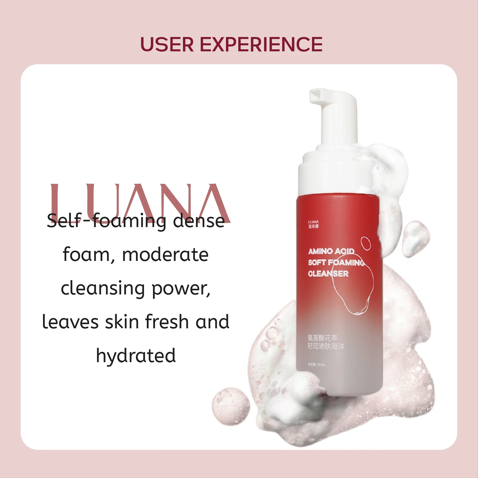 LUANA Peony Extract Amino Acid Soft Foam Oily Skin Type Facial Cleanser for Hydrated Glow ml Size