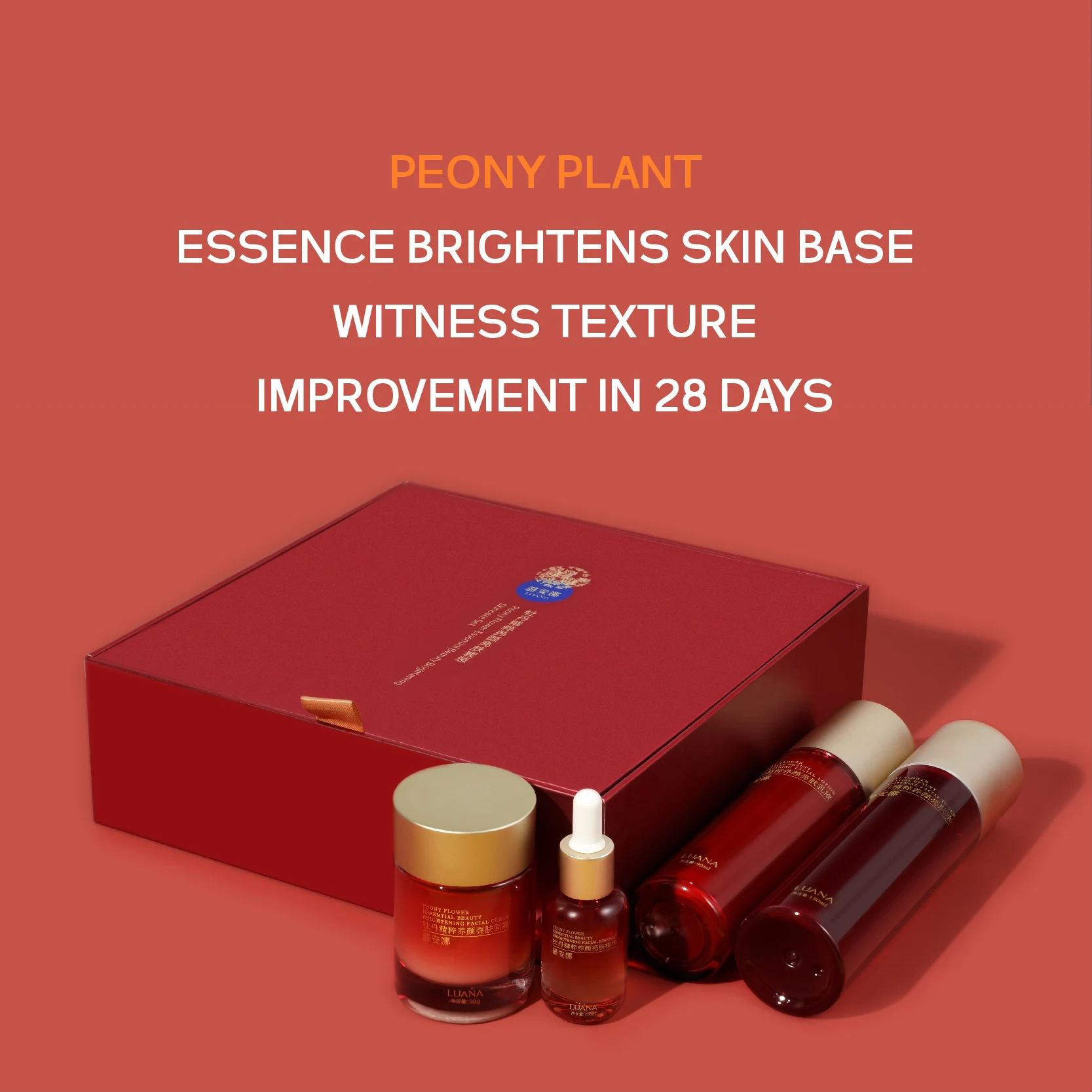 Peony Infused Plant-Based Firming Soothing 4-Piece Set Toner Lotion Serum Cream From Self-Developed Qualified Source Factory