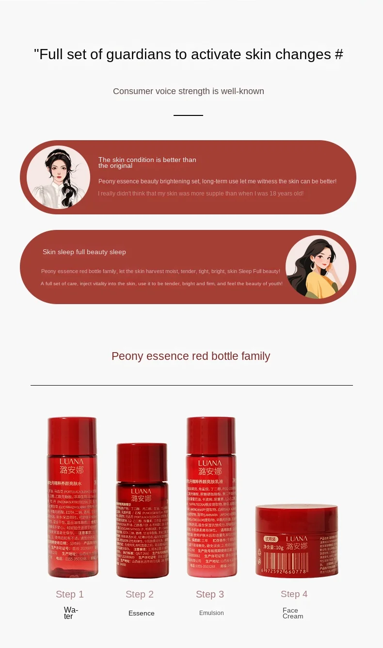 LUANA Travelling Easy Carry Sample Four-piece Set for Hydration, Moisturizing, Anti-aging, Anti-wrinkle Brightening Skin Tone
