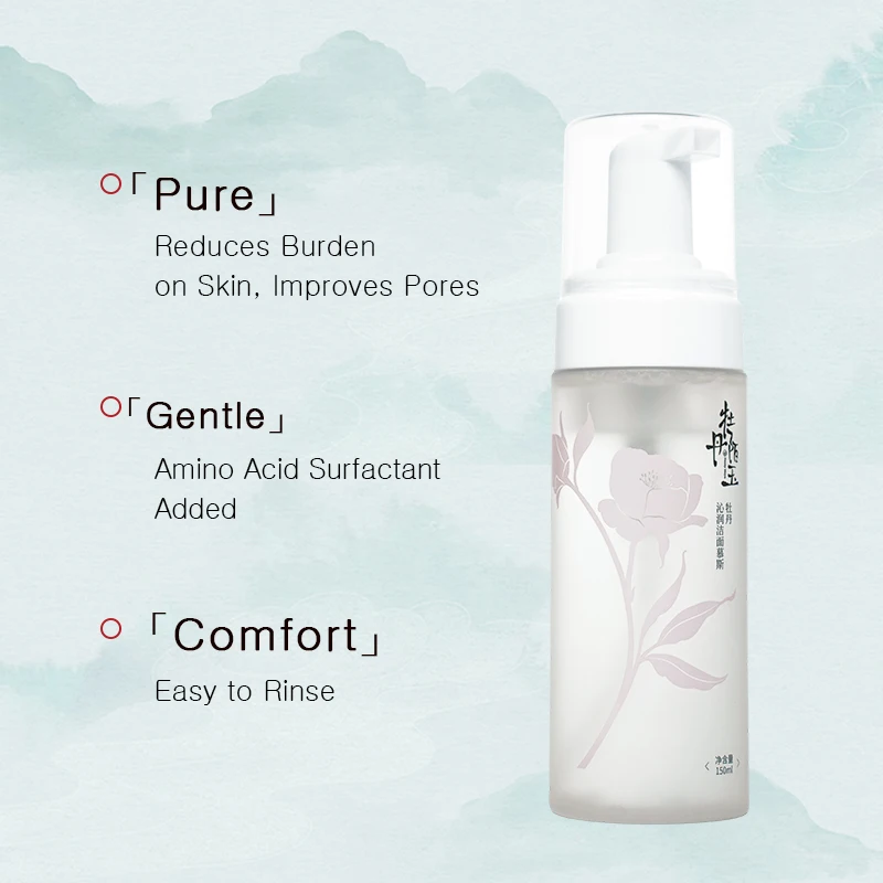 Facial Care Organic Oriental Ingredients Peony Plant Extract Sensitive Skin Deep Cleaning Refreshing Rich Foam Cleansing Mousse