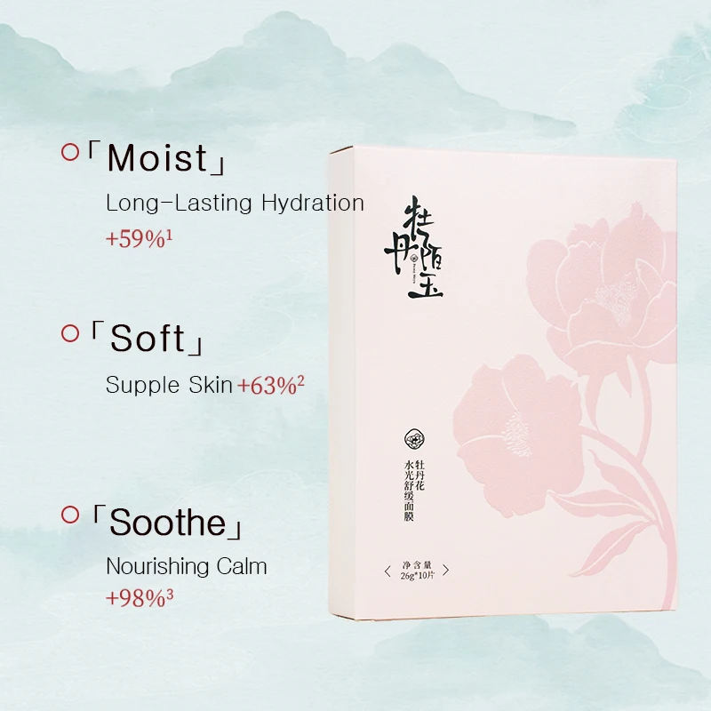 Factory Direct Peony Moyu Organic Sensitive/Dry Skin Moisturizing Soothing Repairing Sheet Facial Mask with Sodium Hyaluronate