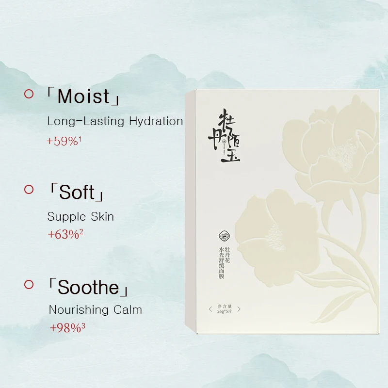 Factory Direct Peony Plant Extract Organic Moisturizing Soothing Repairing Sodium Hyaluronate ODM OEM Sheet Mask for Dry