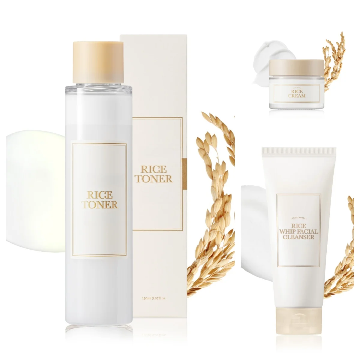 Korean Infom Skin Whitening Cream Rice Cream Rice Bran Serum Rice Cleanser with Glowing Look Improves Moisture Skin Barrier