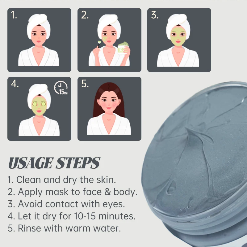 Factory Direct Face Mask Detoxifying Exfoliating Gray Clay with Bamboo Charcoal & Kaolin Purifies Pores & Reduces Oil