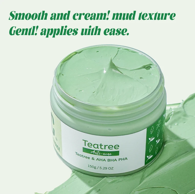 Custom Tea Tree & Green Clay Face Mask Oil Control AHA BHA PHA Exfoliating Formula for Clear & Smooth Skin