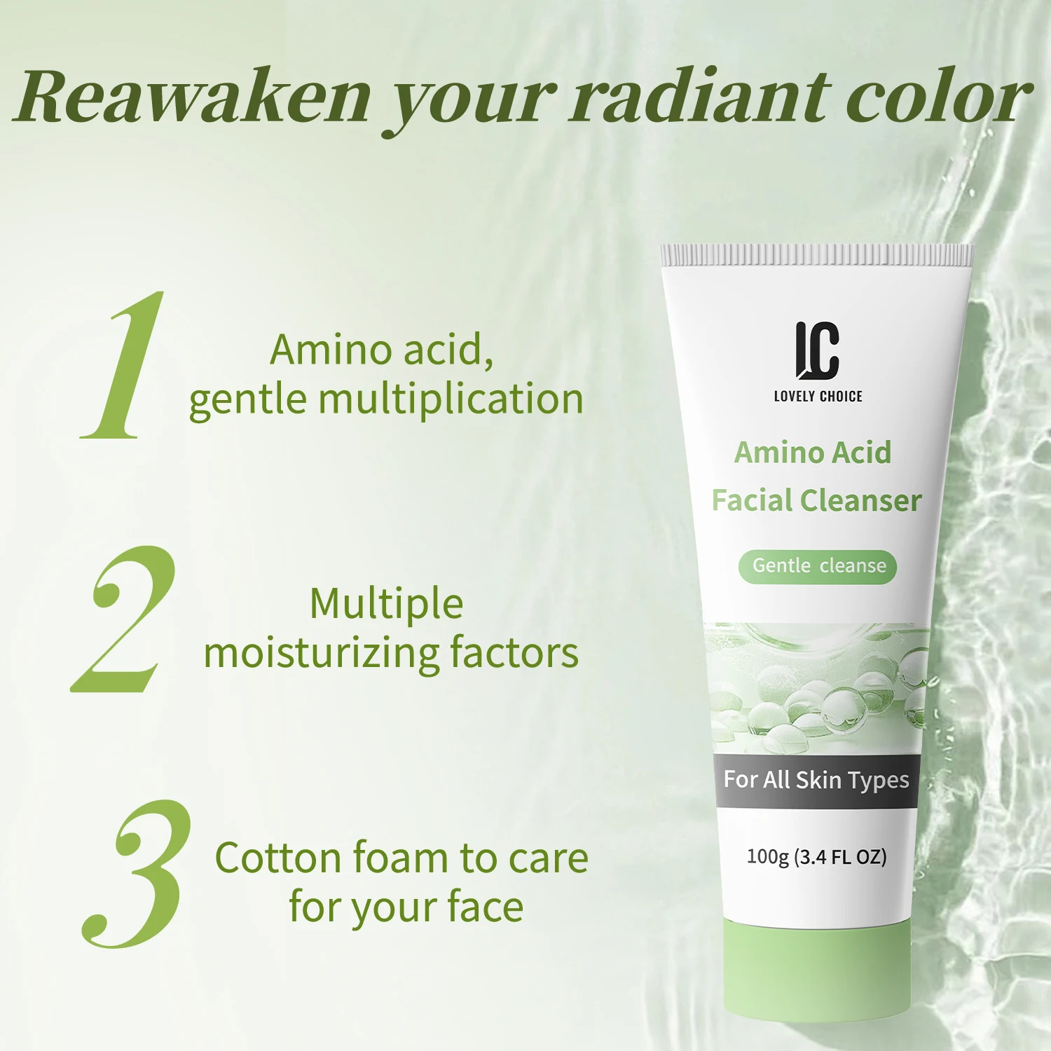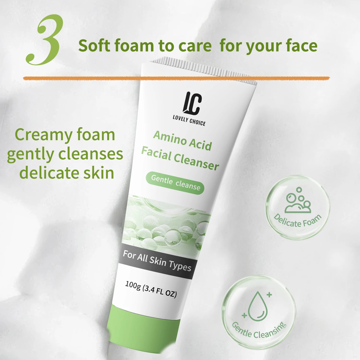 Private Label 3.4 FL OZ Gentle Multiplication Vegan Facial Cream Deep Cleansing Cotton Foam Amino Acid Herbal Face Cleanser