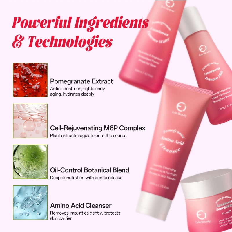OEM/ODM Pomegranate Skincare Kit for Radiant Complexion Customizable Brightening Skin Care Set for Teenagers All Skin Types
