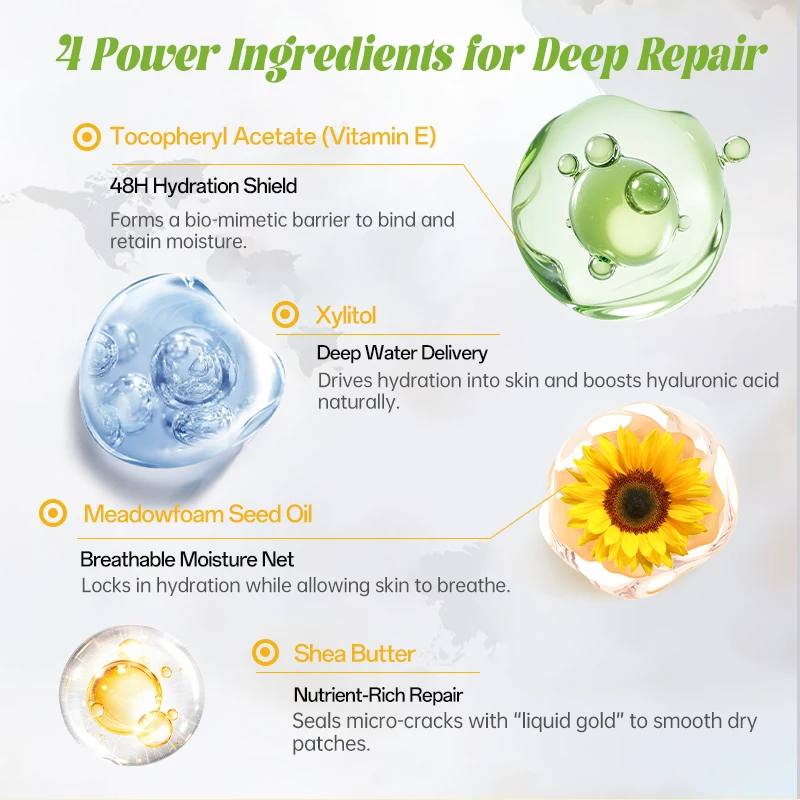 Organic Gentian Extract Face Cream Shea Butter Xylitol Moisturizing Oil-Control Night Use All Skin Types 48H Hydration Lasting