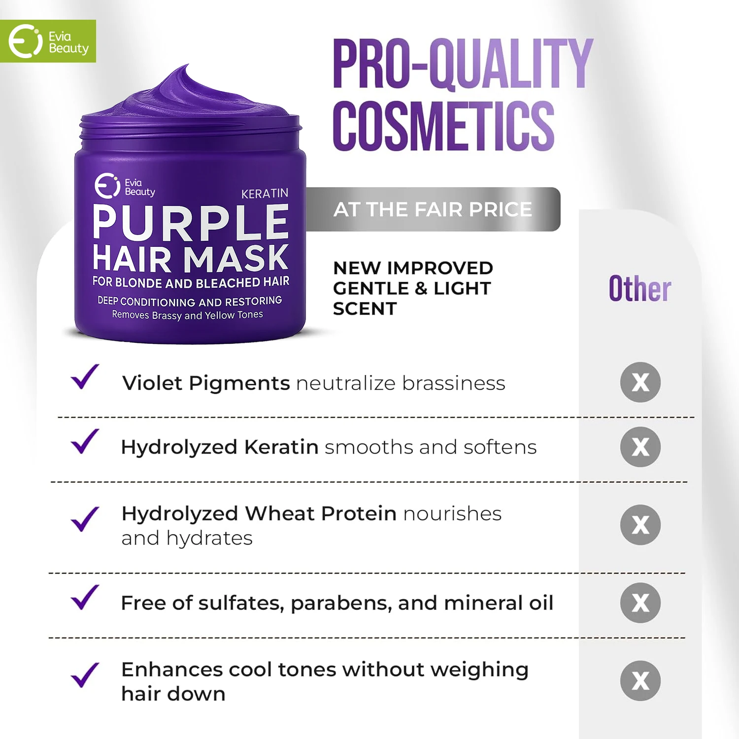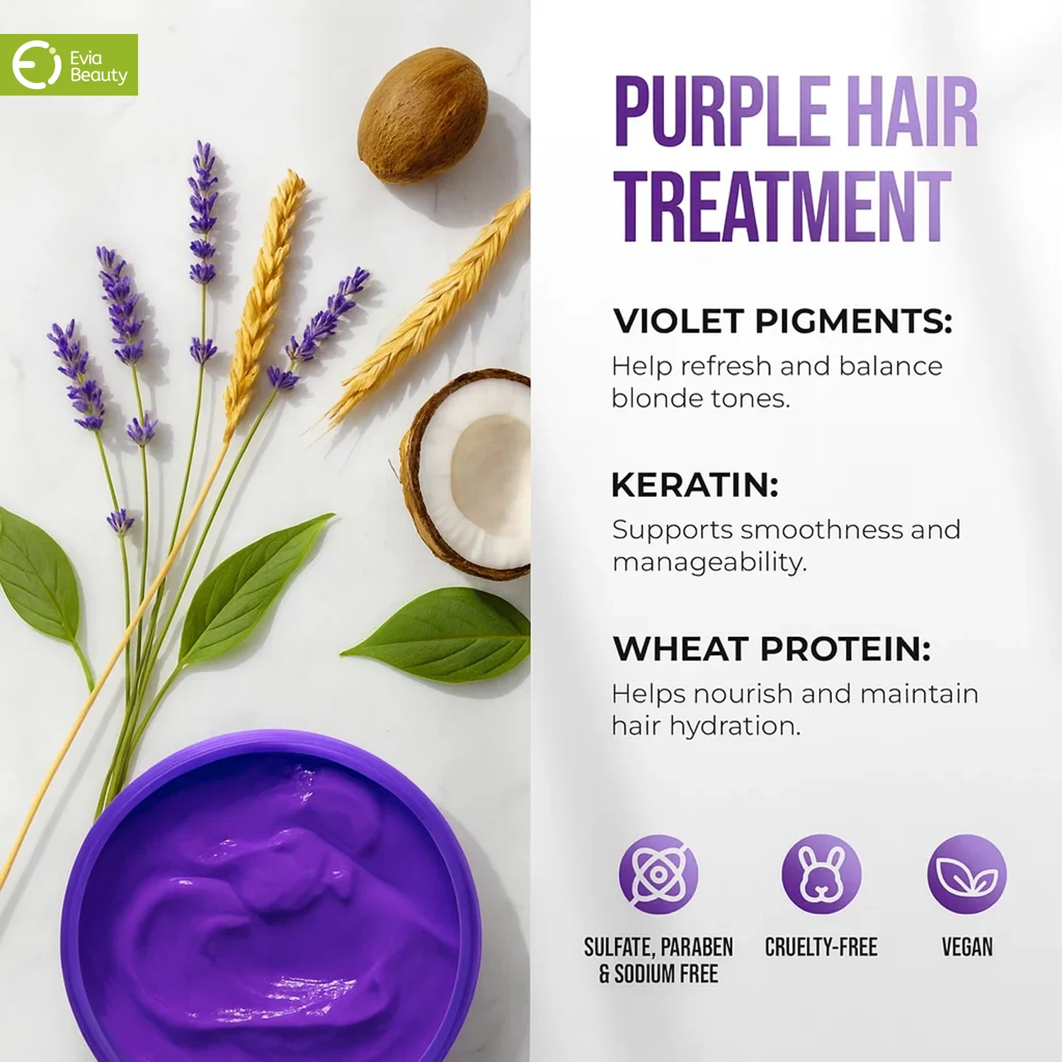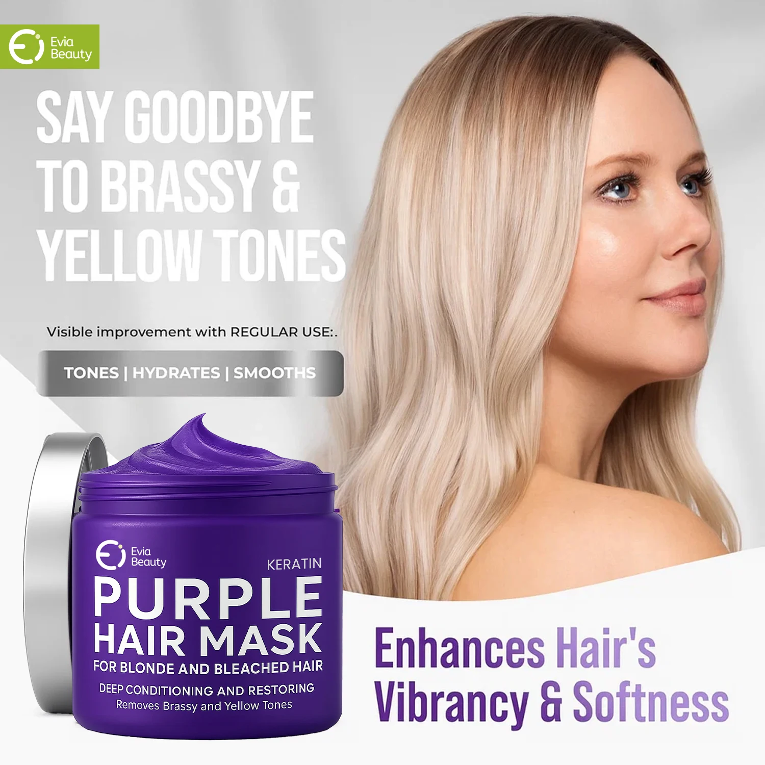Keratin Purple Hair Mask Repair & Nourishment Treatment , No Yellow Tones Deep Conditioner for Color Treated Locks