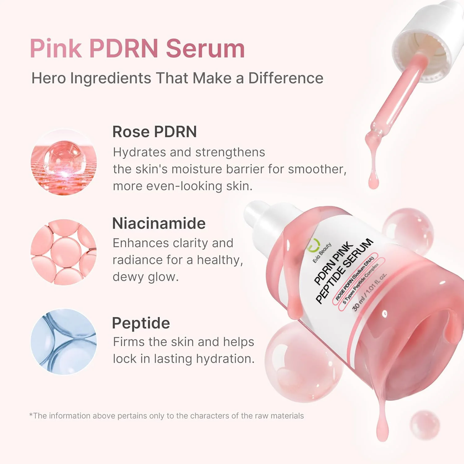 Evia Beauty Rose PDRN Pink Peptide Serum Niacinamide Hydrating Barrier Repair Brightening Anti-Aging Firming Reduce Fine Lines