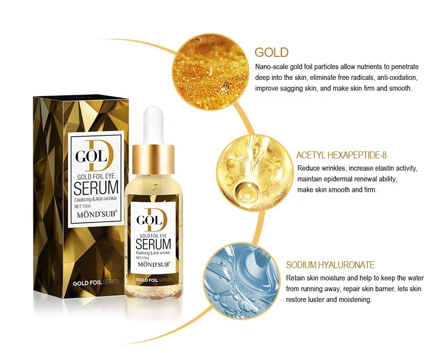 OEM Private Label 24K Gold Serum Skin Care Firming Anti Wrinkle Gold Foil Collagen Eye Serum