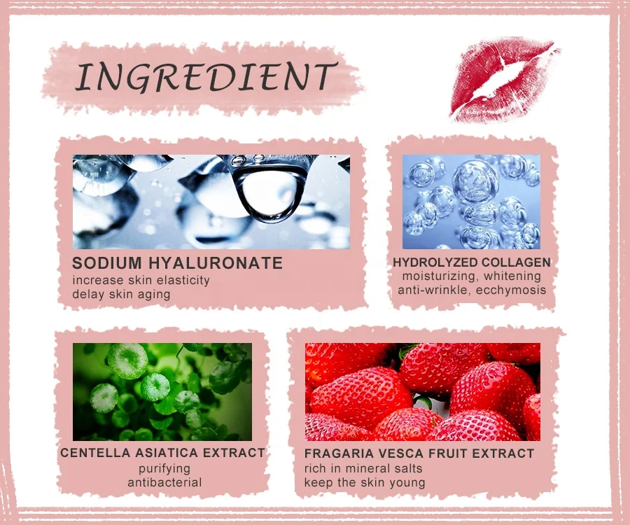 Private Label logo Wholesale Strawberry Collagen Lip Mask Hydrating Lip Plumping Mask Lip Mask Manufacturer