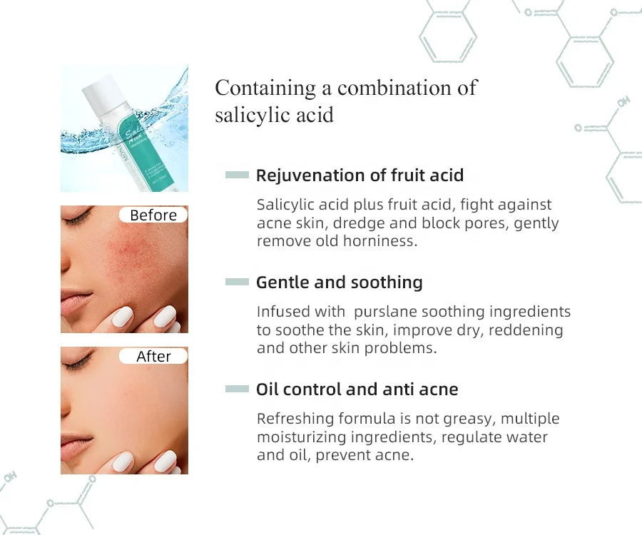 Private Label Salicylic Acid Moisturizing Smoothing Acne Face Toner for Oily Acne Skin
