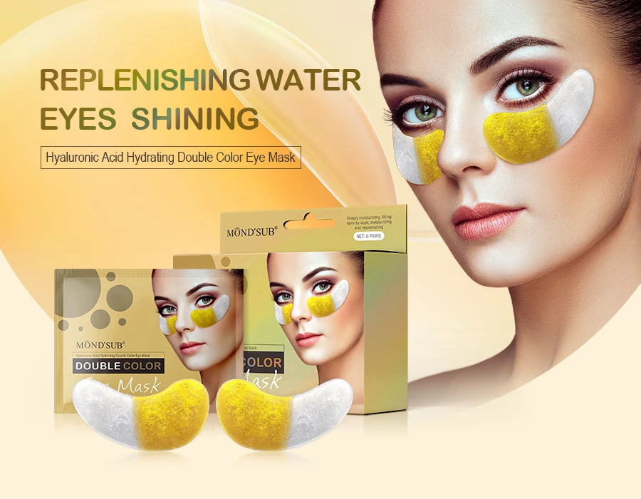 Private Label Puffy Gel Hydrogel Double Color Bicolor Gold Eye Mask Under Eye Collagen Mask Patch for Adult Wholesale