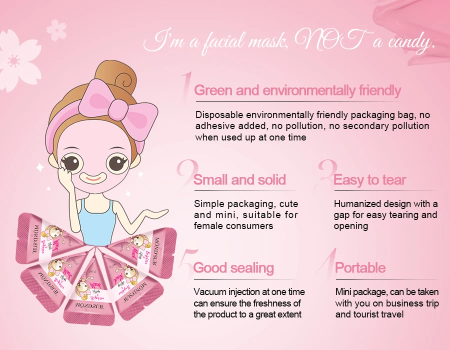 MOND'SUB Korean Organic Nicotinamide Brighten Cherry Blossom Clay Mud Mask CICA Mini Pink Vitamin C Facial Clay Mask