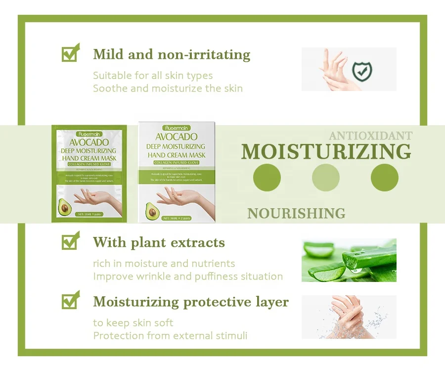 Private Label Avocado Hand Mask Deep Moisturizing Care Hand Cream Mask OEM