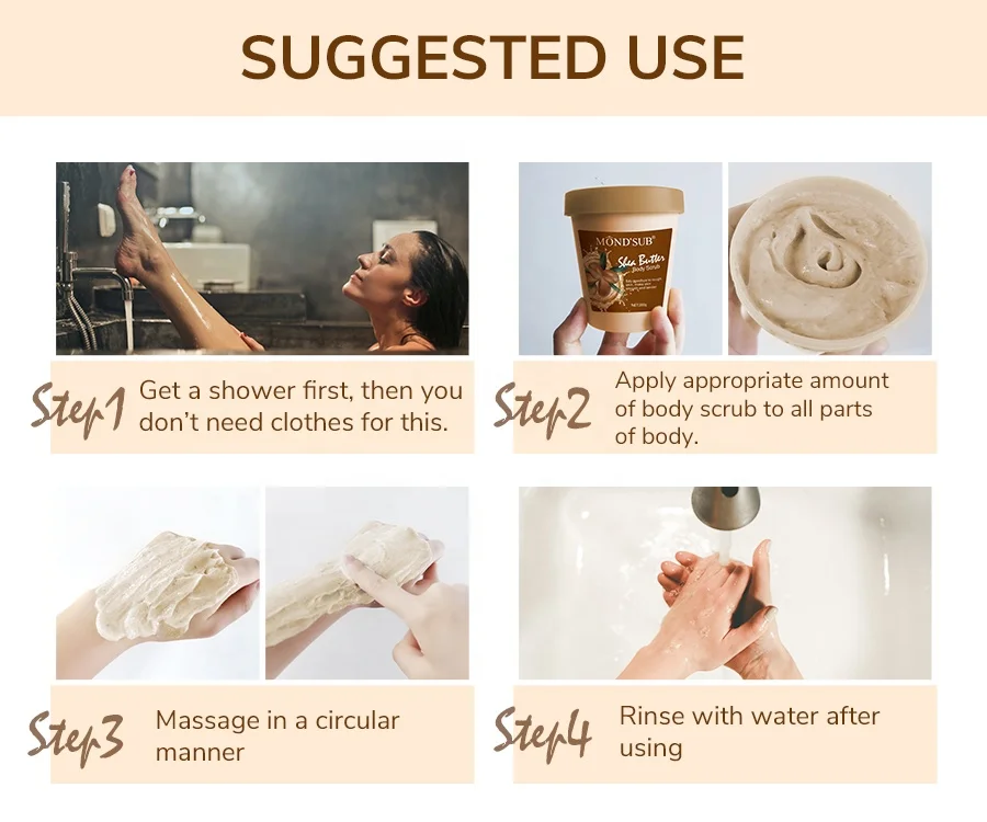 Private Label Oem Korean Vegan Wholesale Bulk Organic Cosmetics Herbal Soothing Shea Butter Fruits Custom Body Scrub for Body