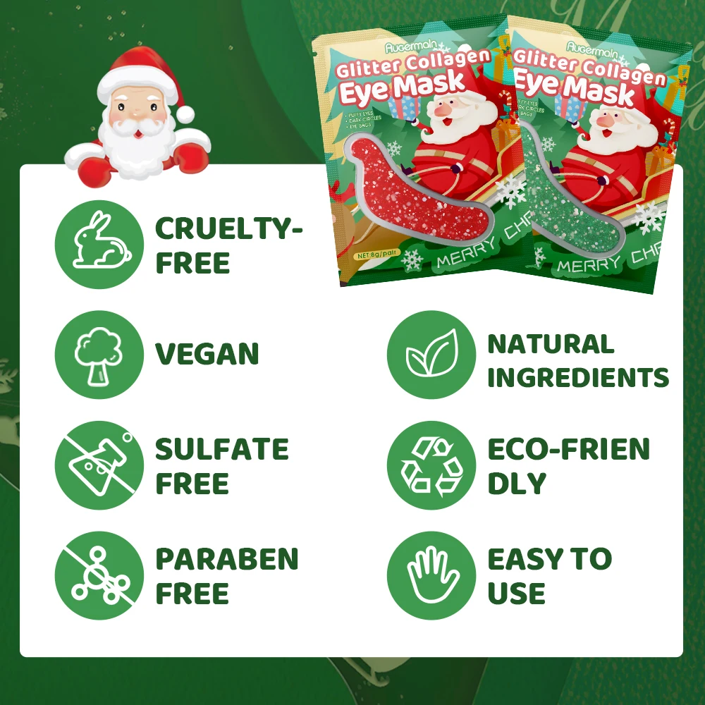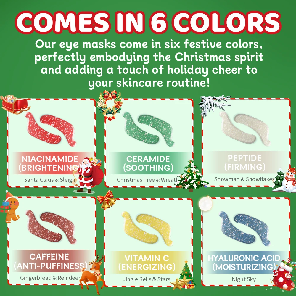 Custom Christmas Collogen Eye Masking Caffeine Hydrating Under Eye Mask Crystal Eye Maskss Patches Moisturizer for Dark Circle