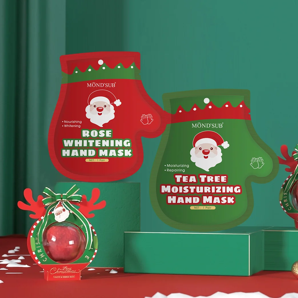 Custom Korea Vegan Hand Care Spa Mask Christmas Repair Hand Masking Gloves Rose Whitening Hydrating Sheet Hand Mask Moisturizer