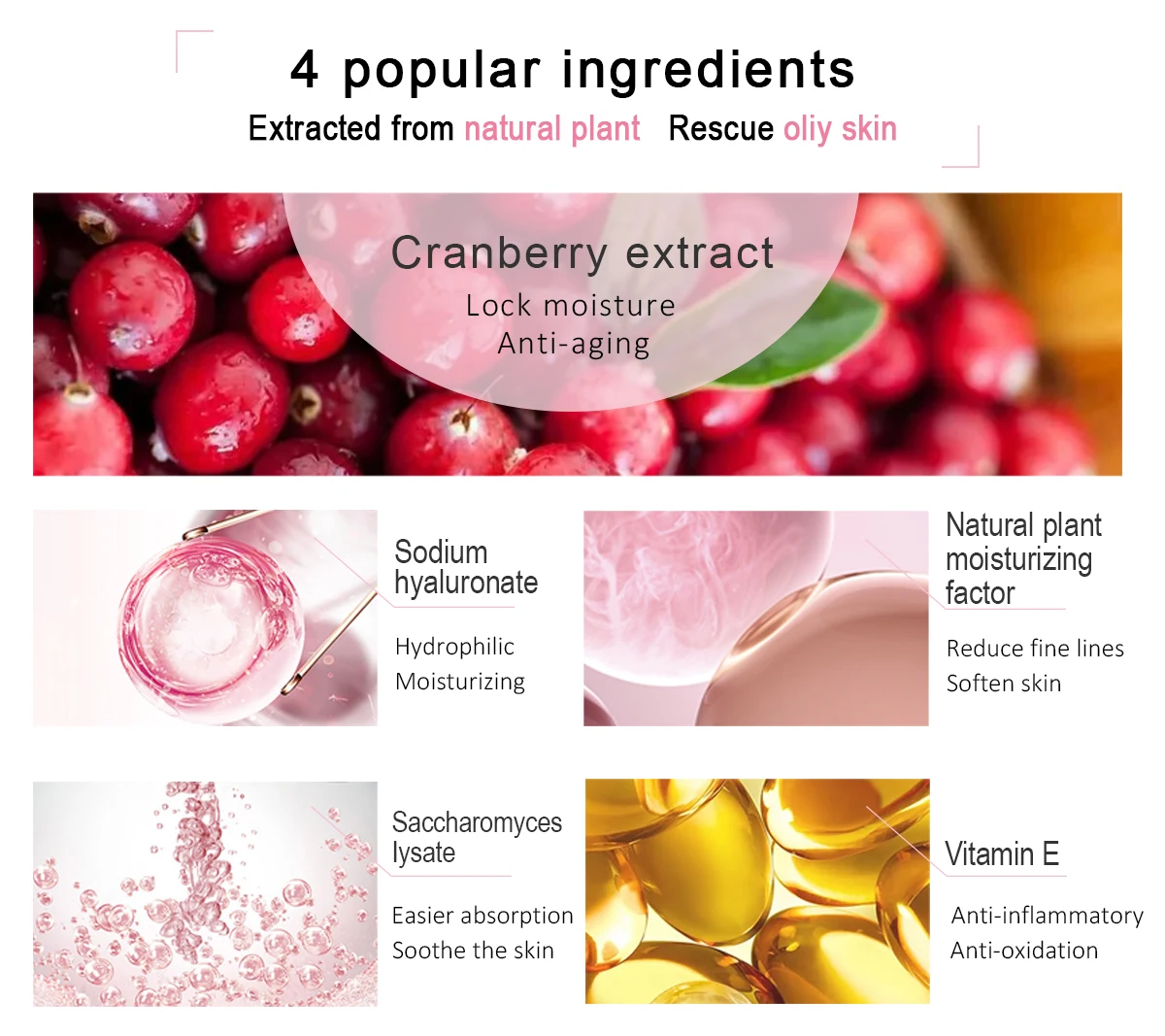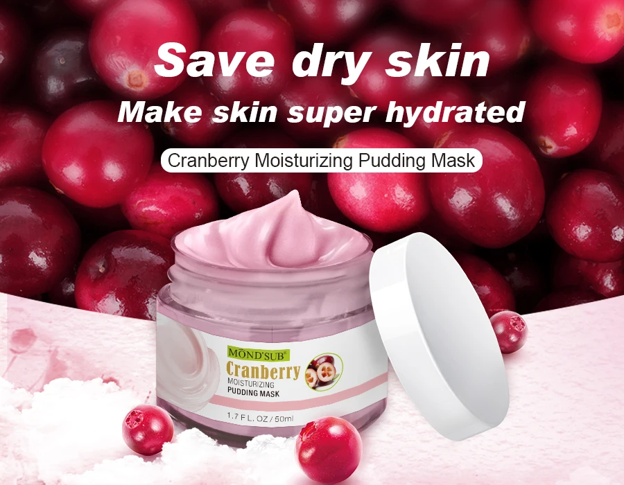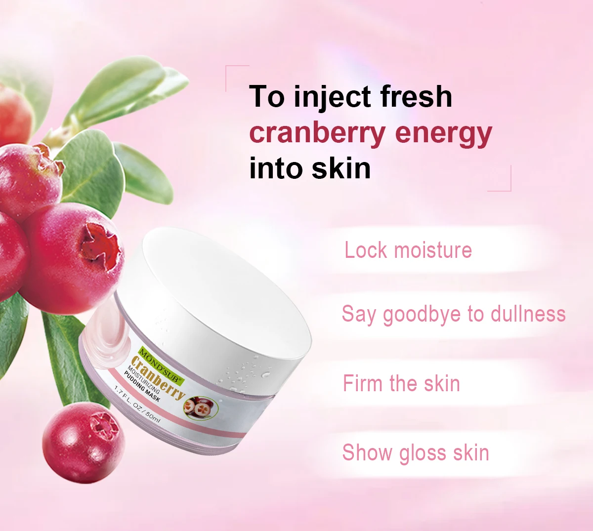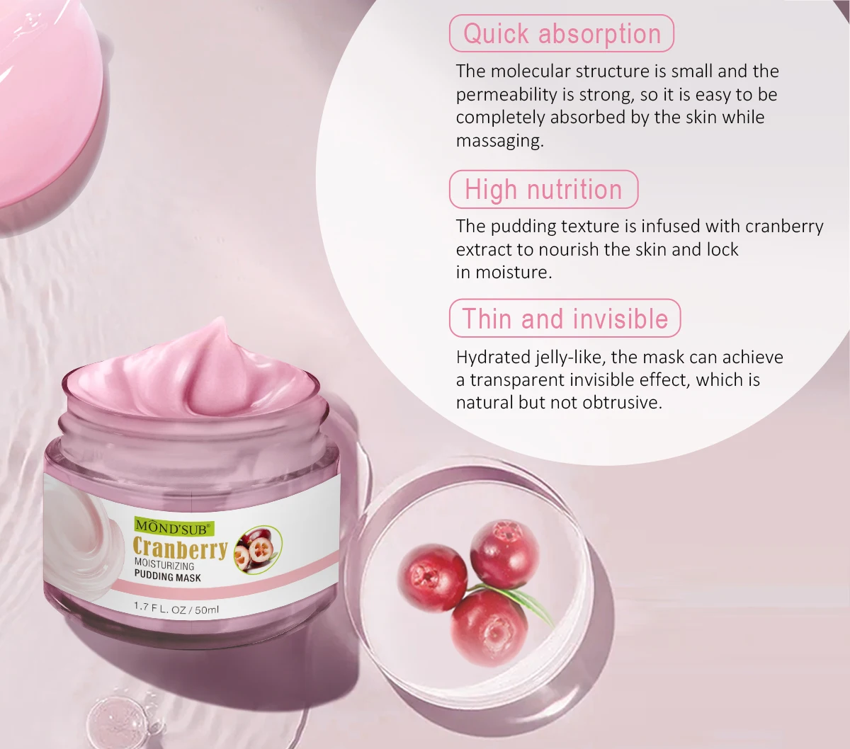 Private Label Water Clay Pudding Texture Cranberry Face Mask Vitamin E Hyaluronic Acid Sleep Mask Tired Dull Skin Mud Mask