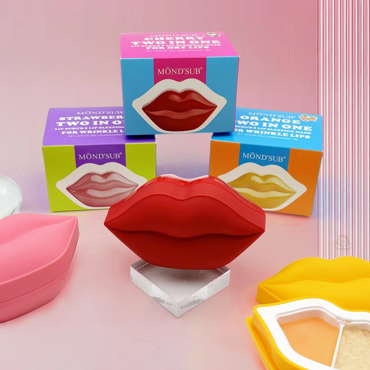 Oem Vegan 2 in 1 Lip Care Set Exfoliating Sugar Scrub Kits Nourishing Lip Mask Moisturizer Repairing Lip Scrub and Balm Set