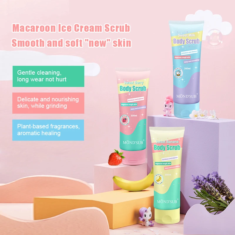 Wholesale Vegan Exfoliating Sugar Moisturizing Berry Banana Milk Fruit Ice Cream Whitening Body Scrub