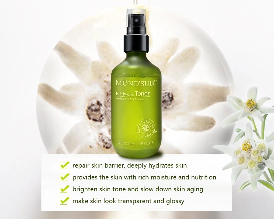 Mond'sub Natural Organic Herbal Face Toner Edelweiss Infused Moisturizing and Nourishing Facial Spray