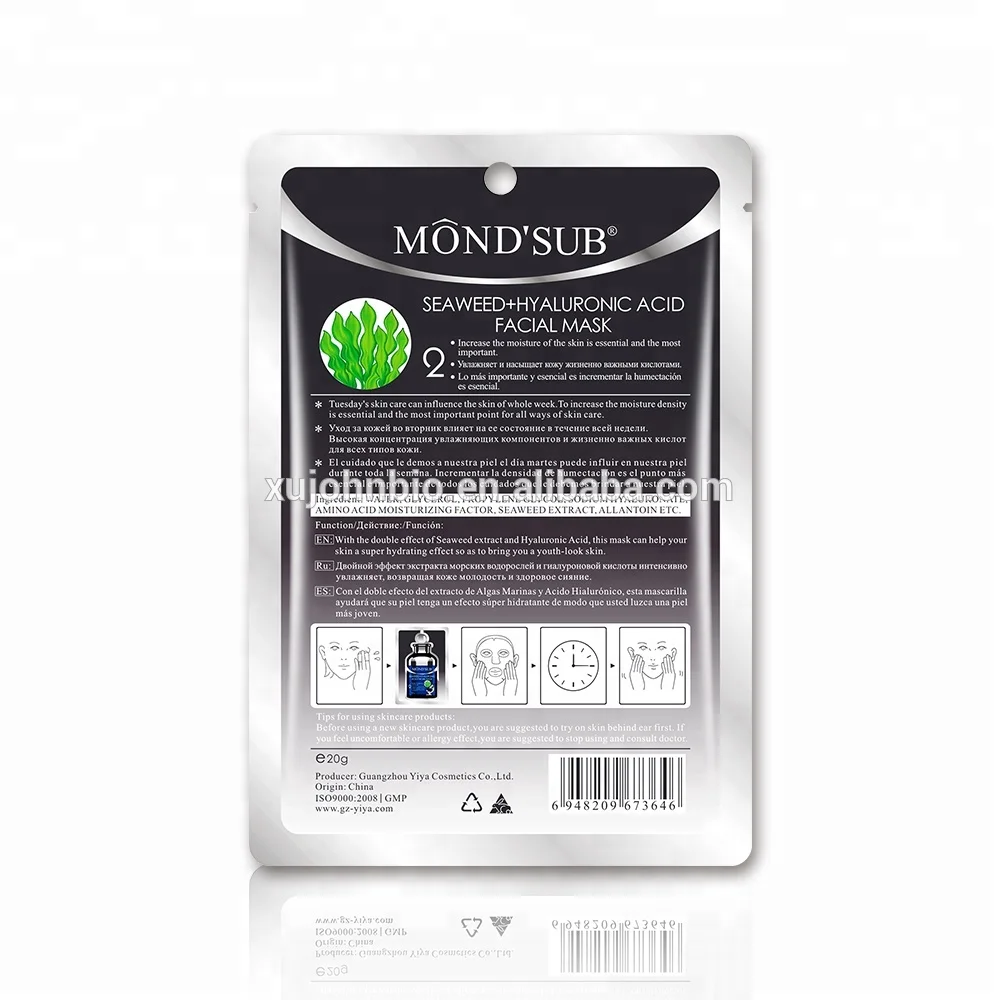 Hot Selling Tuesday Seaweed+hyaluronic Facial Non-woven Facial Anti-aging Hyaluronic Acid Facial Mask