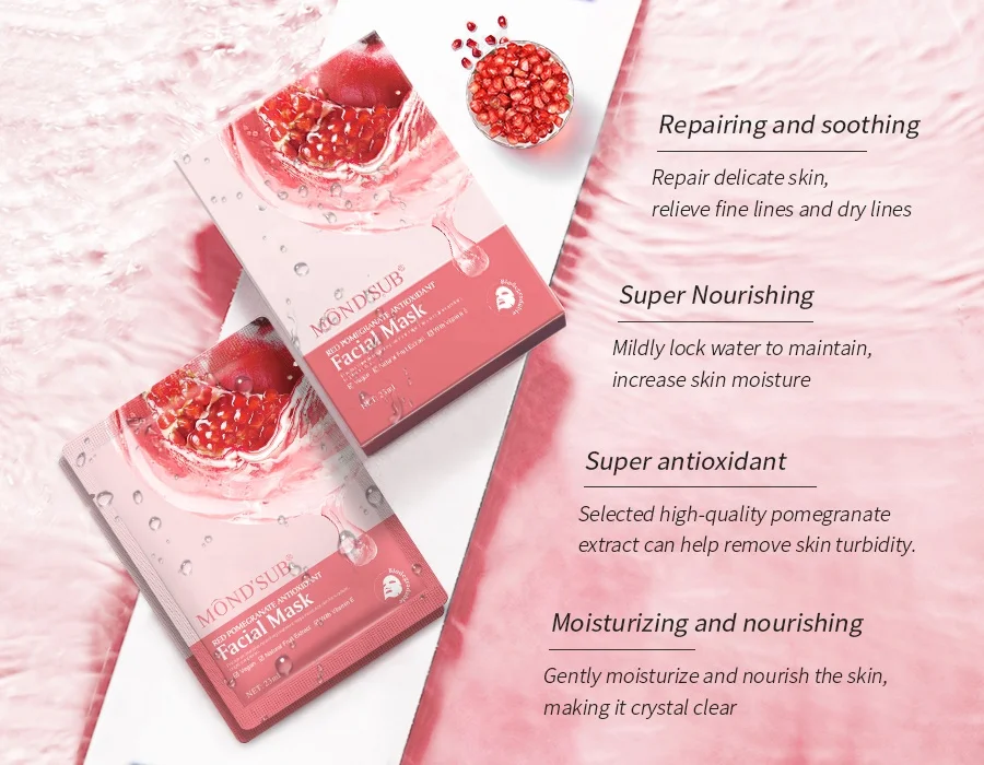 MOND'SUB Vegan Skincare Face Mascarillas Natural Red Pomegranate Antioxidant Facial Mask