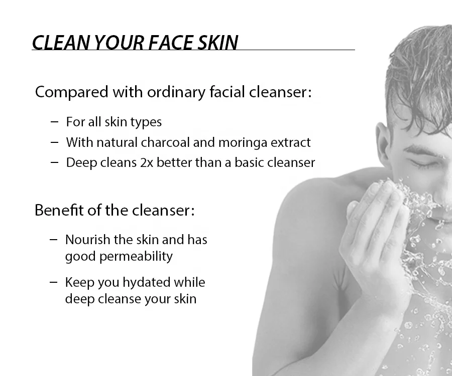 Private Label Volcanic Mud Foam Organic Acne Charcoal Mens Facial Cleanser Men's Face Wash