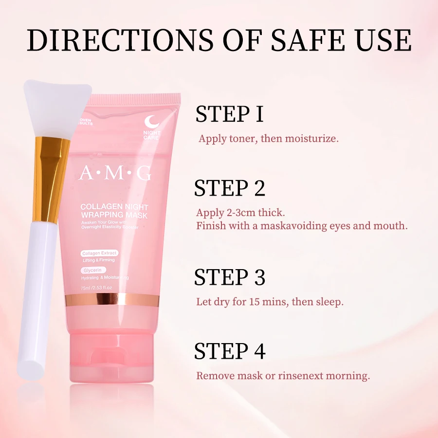 Private Label Face Care Mask Hydrating Collagen Anti Aging Wrinkle Overnight Wrapping Peel Off Facial Mask