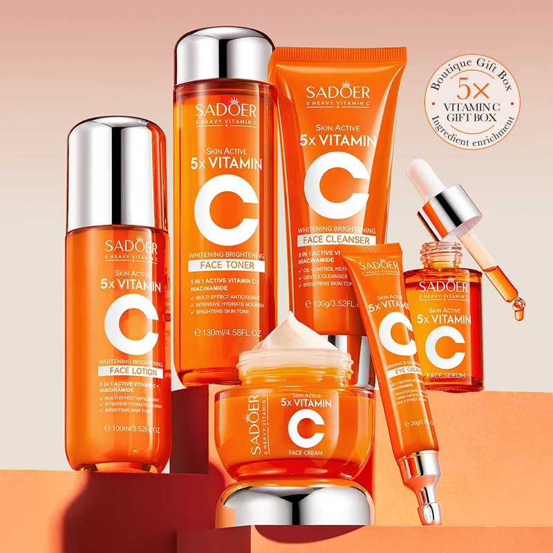 Wholesale Five Pieces Vitamin C Niacinamide Whitening Brightening Skin Gift Box Nourishing Moisturizing Skin Care Set