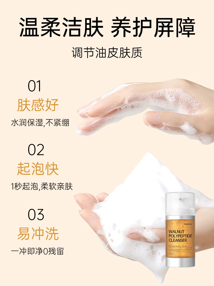 Face Care Cleanser Moisturizing Oil Control Pore Shrinking Protective Barrier Walnut Polypeptide Cleanser