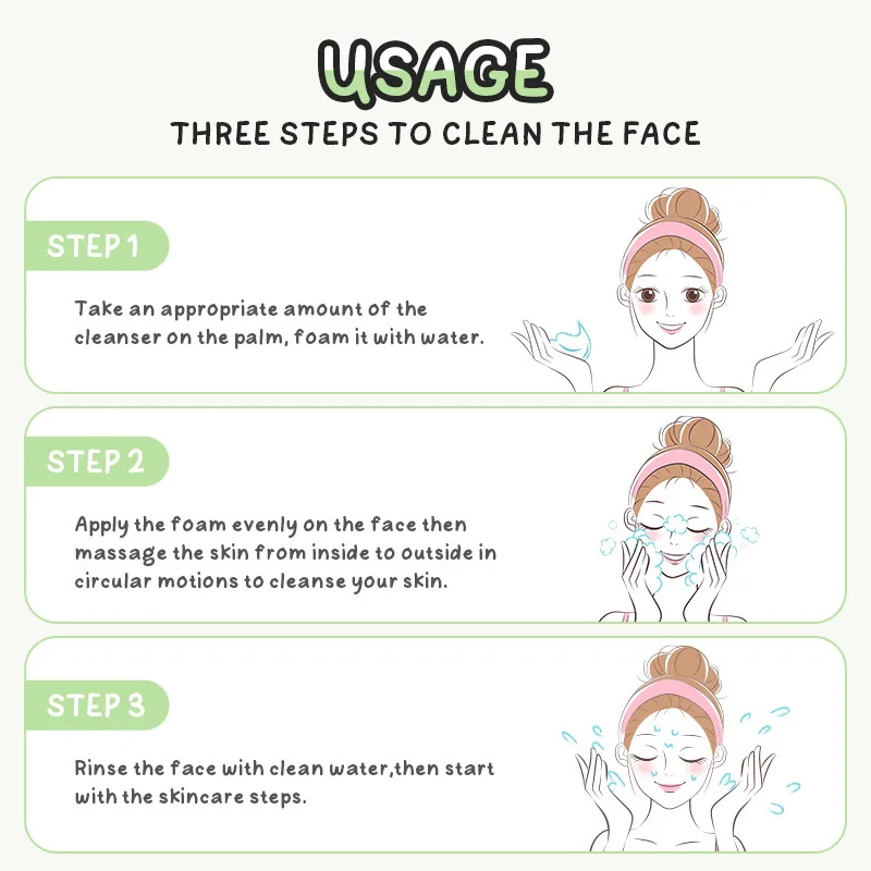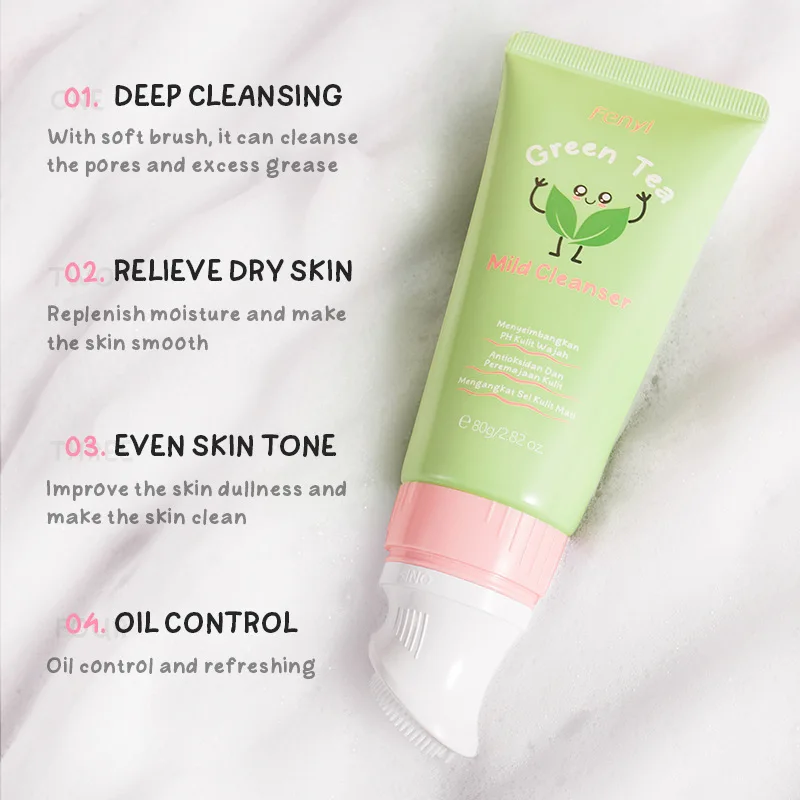 Organic Face Wash with Brush Acne Whitening Hydrating Foaming Green Tea Facial Mousse Cleanser for Oily Dry Skin