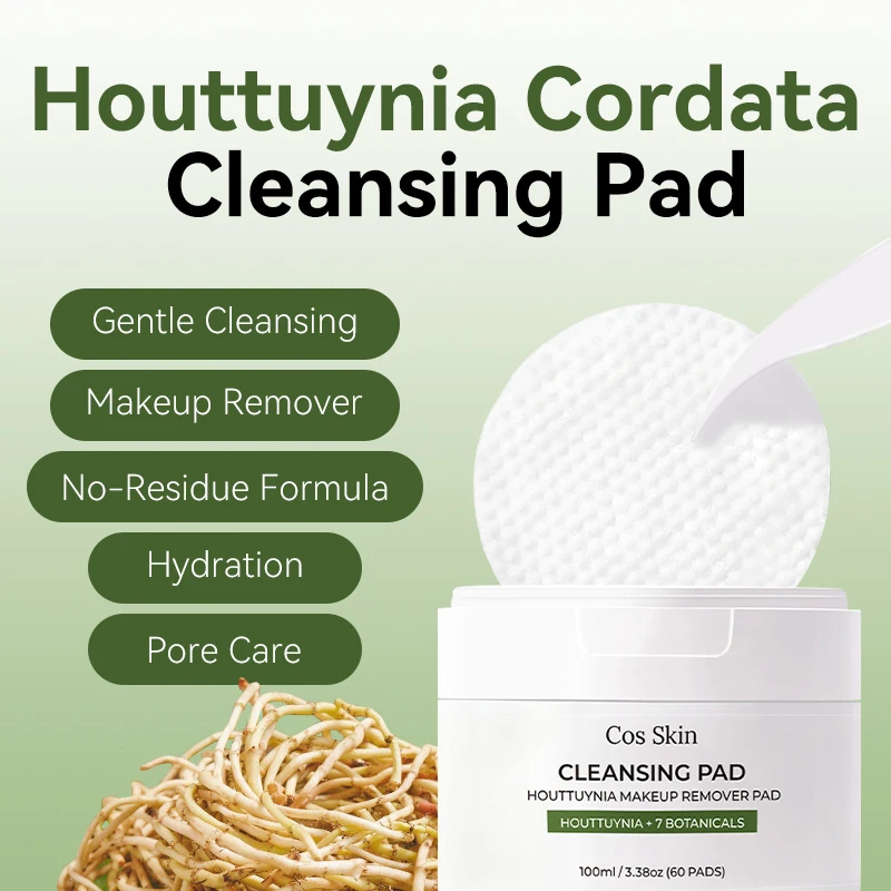 Private Label Face Cleaning Pad Houttuynia Facial Cleansing Makeup Remover Cotton Pads for Sensitive Skin