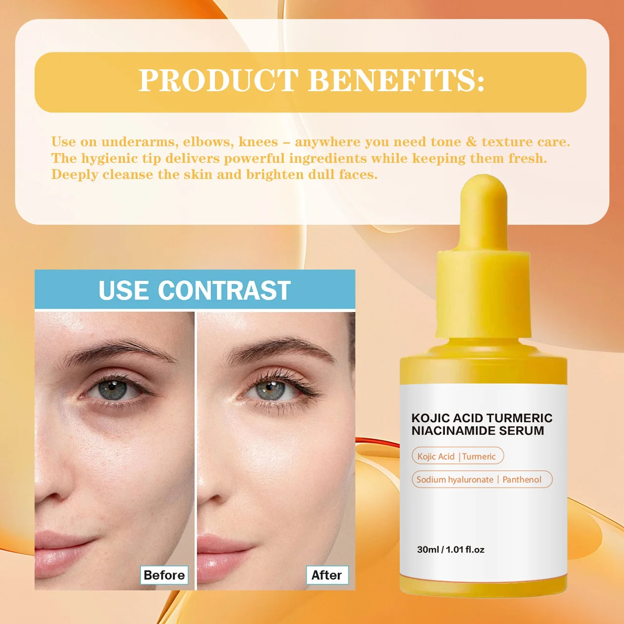 Private Label Moisturizing Anti Aging Whitening Lightening Skin Care Glow Kojic Acid Turmeric Niacinamide Face Serum