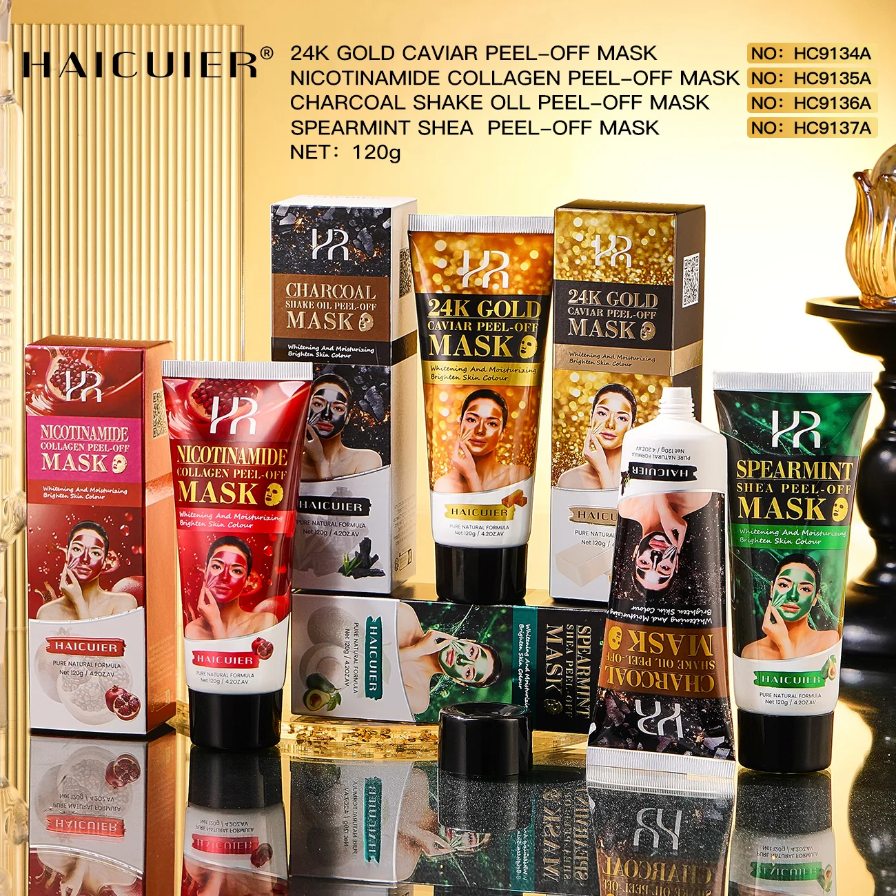 Private Label Skin Care Moisturizing Whitening Lightening Peel Off 24k Gold Nicotinamide Collagen Facial Care Mask