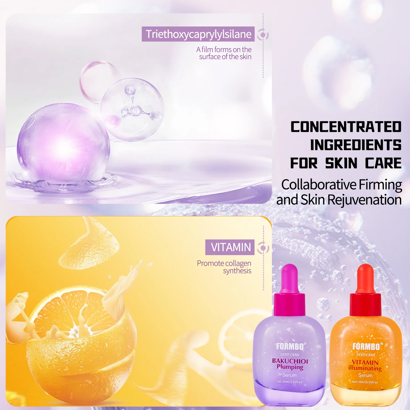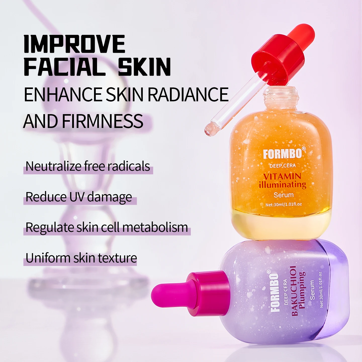 Private Label Natural Vitamin Illuminating Pore Shrinking Whitening Hydrating Brightening Facial Bakuchiol Serum