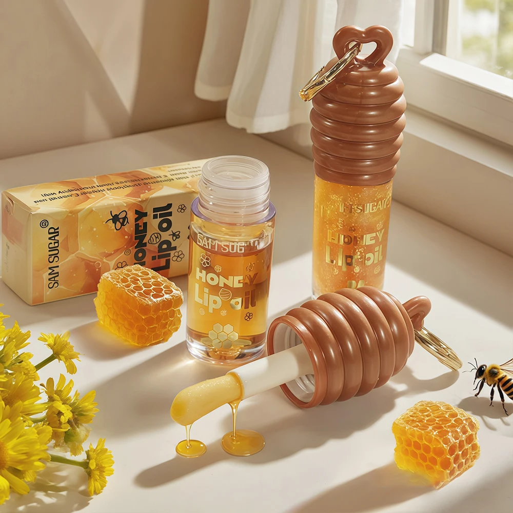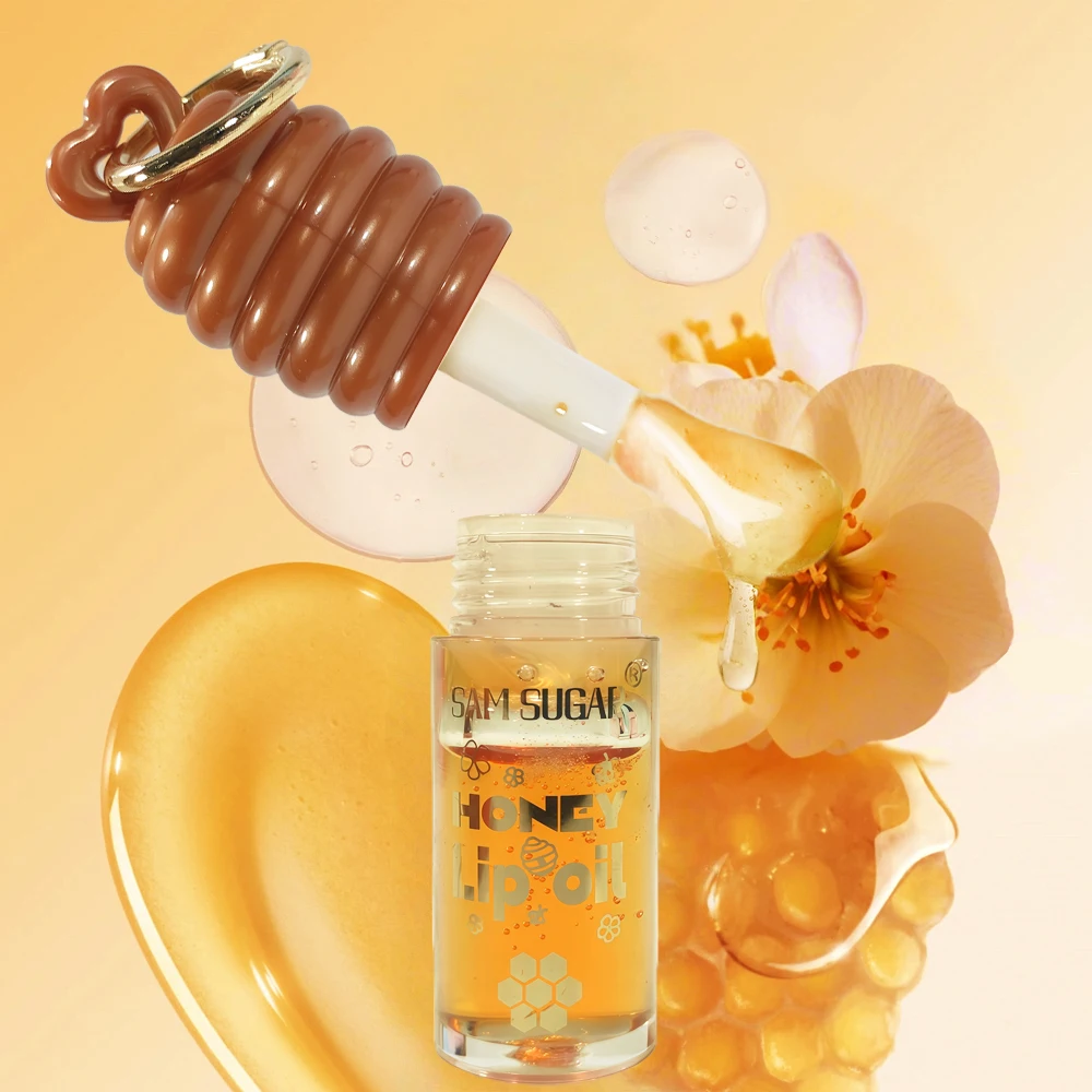 Wholesale Natural Organic Moisturizing Hydrating Plumping Honey Glitter Cute Lip Plumper Oil with Chain