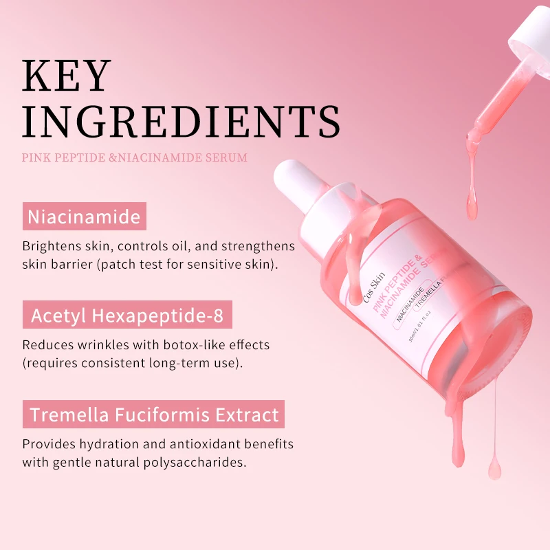 Private Label Moisturizing Anti Aging Whitening Lightening Skin Care Glow Niacinamide Face Pink Peptide Serum