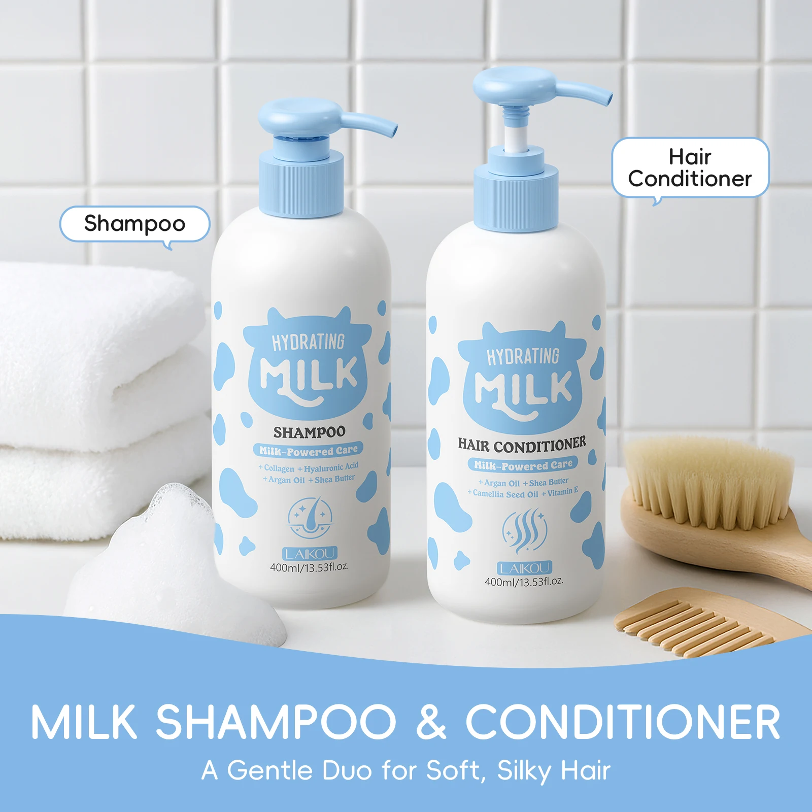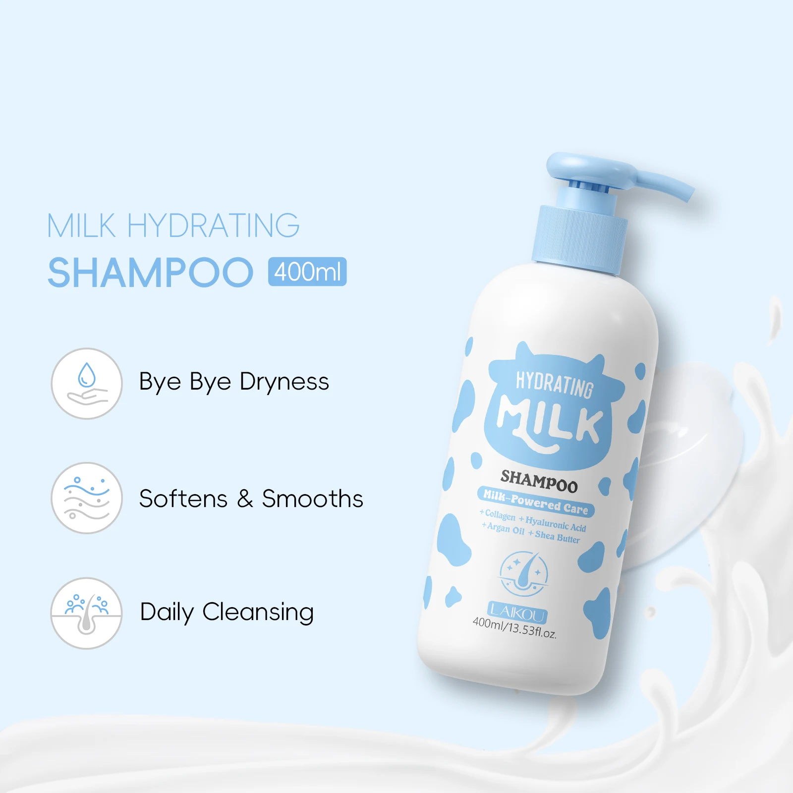LAIKOU Organic Natural Hair Care Professional Anti Hair Loss Hydrating Argan Oil Milk Hair Growth Shampoo