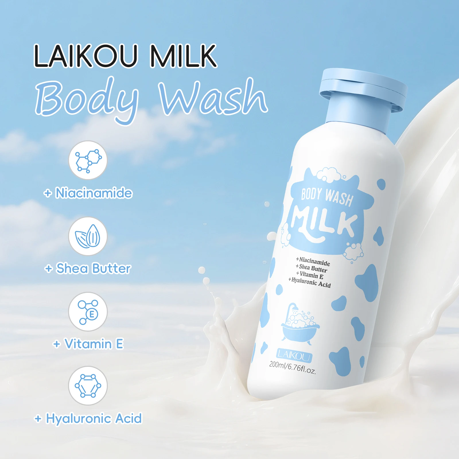 Private Label Organic Whitening Moisturizing Brightening Deep Cleansing Niacinamide Milk Body Cleanser Wash