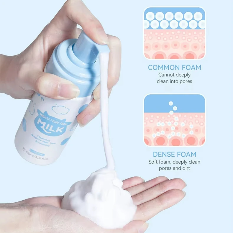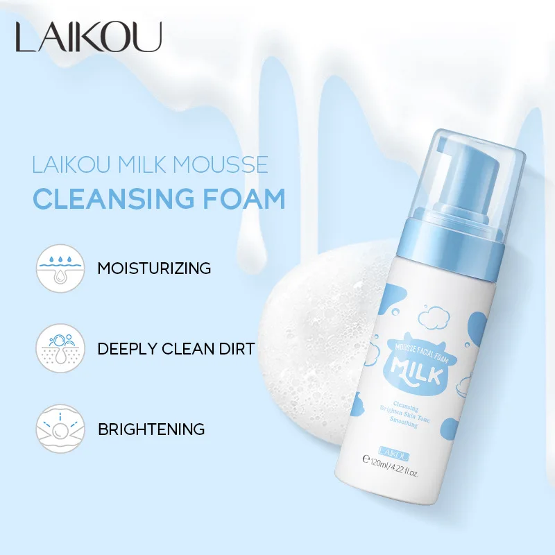 Wholesale LAIKOU Skin Care Hydrating Deep Cleansing Moisturizing Brightening Milk Mousse Cleansing Face Foam