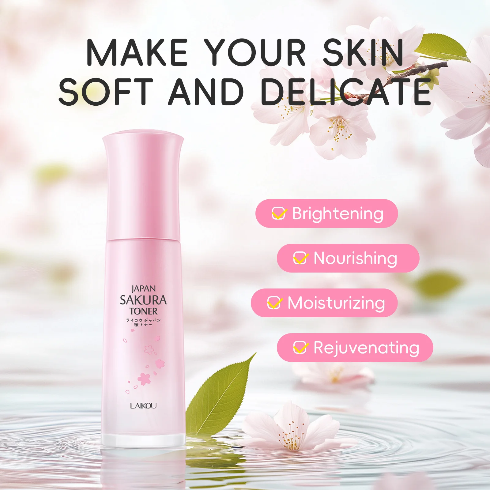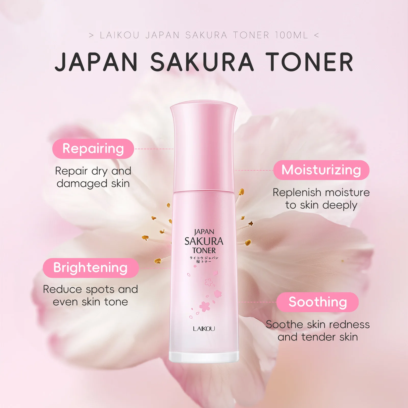 Wholesale LAIKOU Moisturizing Brightening Nourishing Firming Soothing Niacinamide Janpan Sakura Face Toner