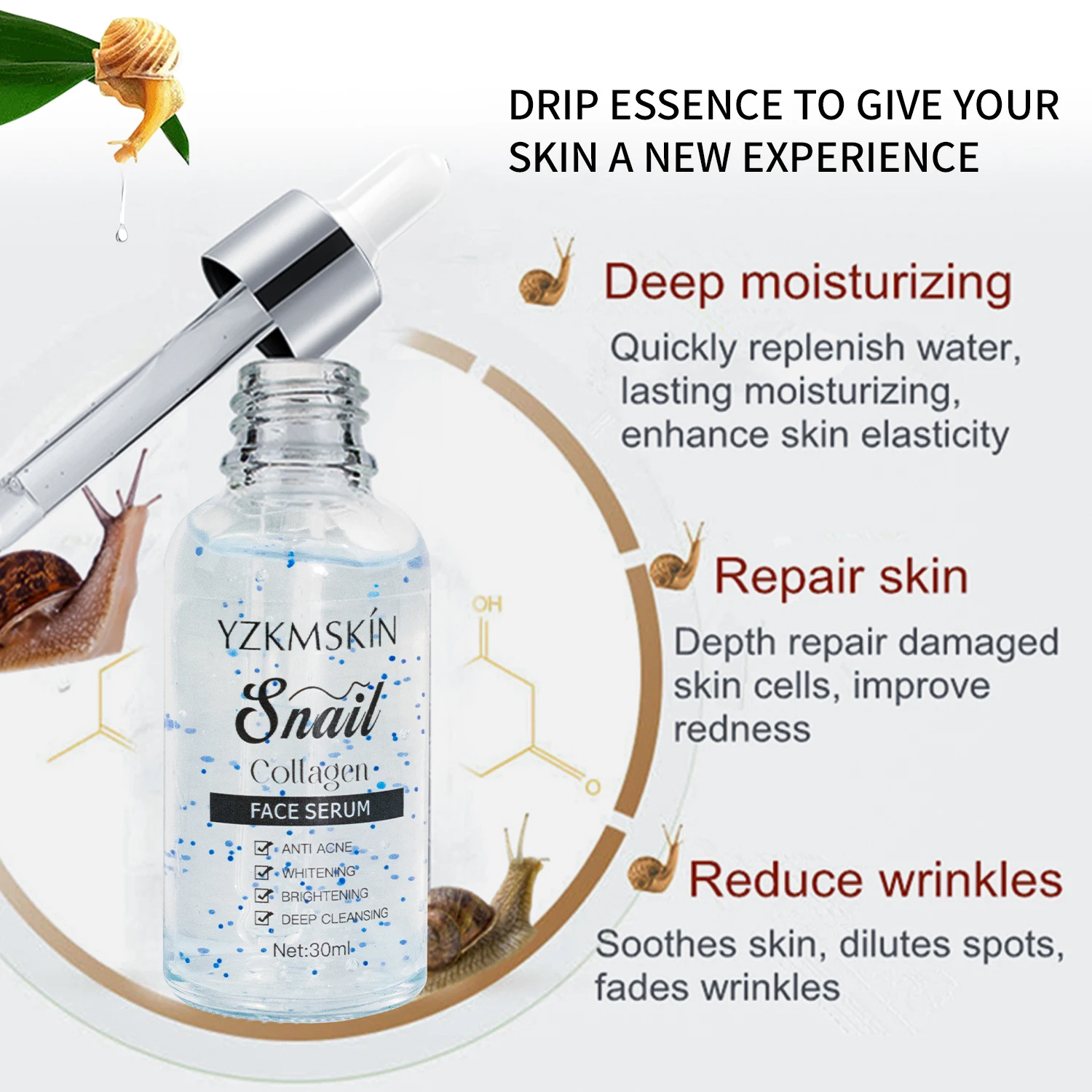 OEM ODM Whitening Collagen Essence Facial Care Liquid Reducing Wrinkles Moisturizing Skin Care Organic Anti Aging Face Serum