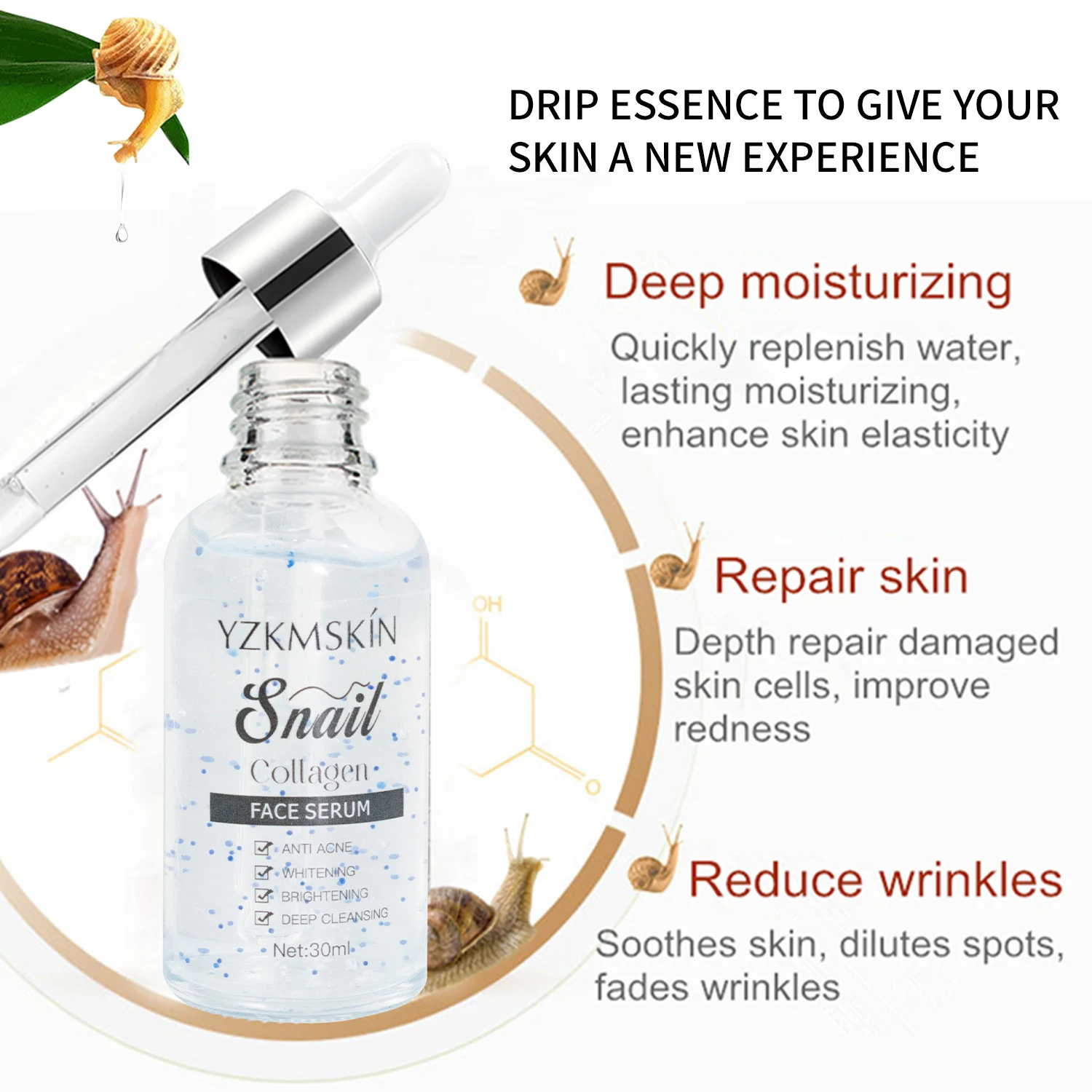 Oem Odm Advanced Skin Care Moisturizer Repairing Wrinkle Whitening Brightening Anti Aging Anti Acne Snail Collagen Face Serum