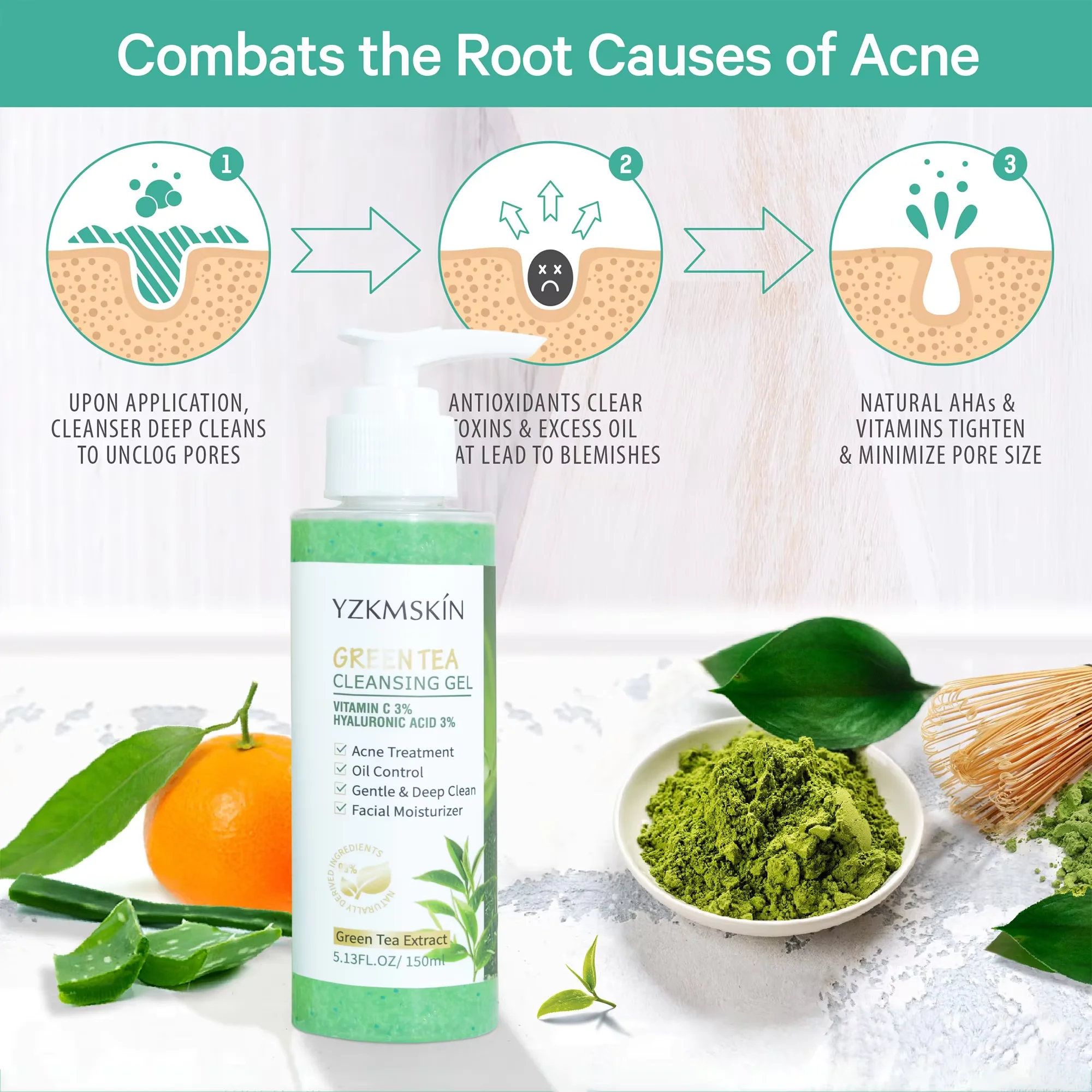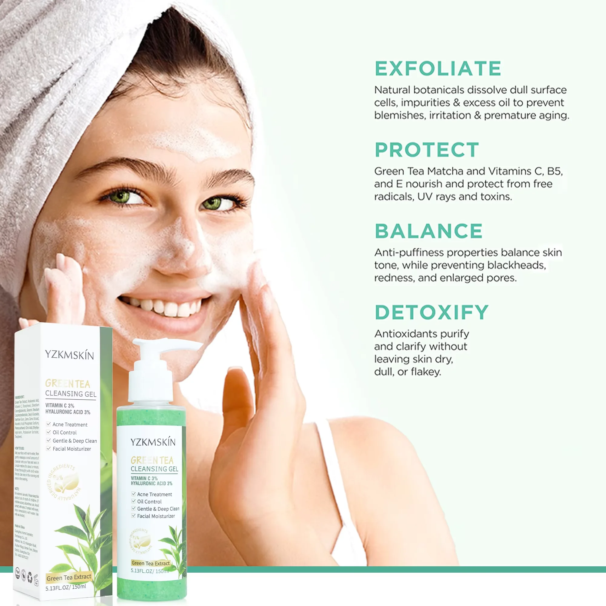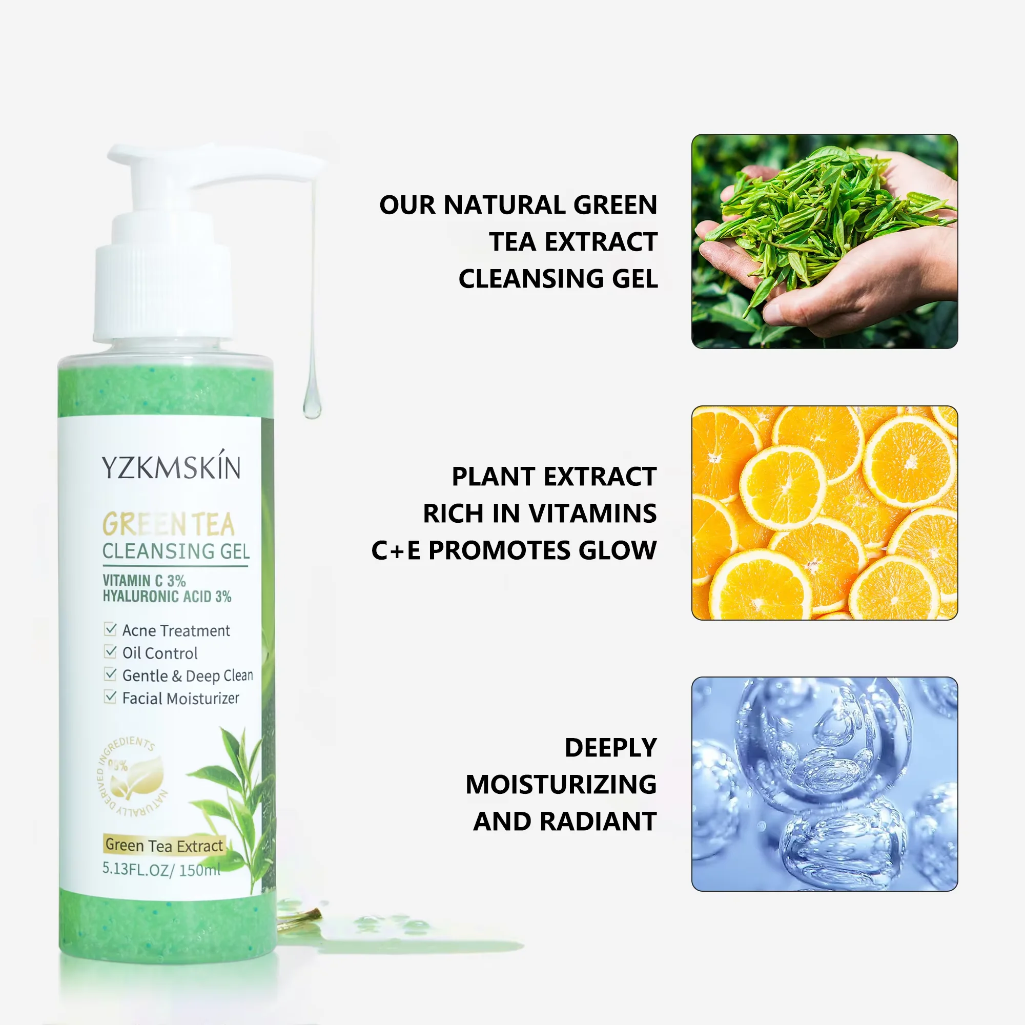 OEM Skin Care Moisturizer Oil Control Serum Vitamin C Hyaluronic Acid Face Wash Green Tea Cleansing Cream Facial Gel Cleanser