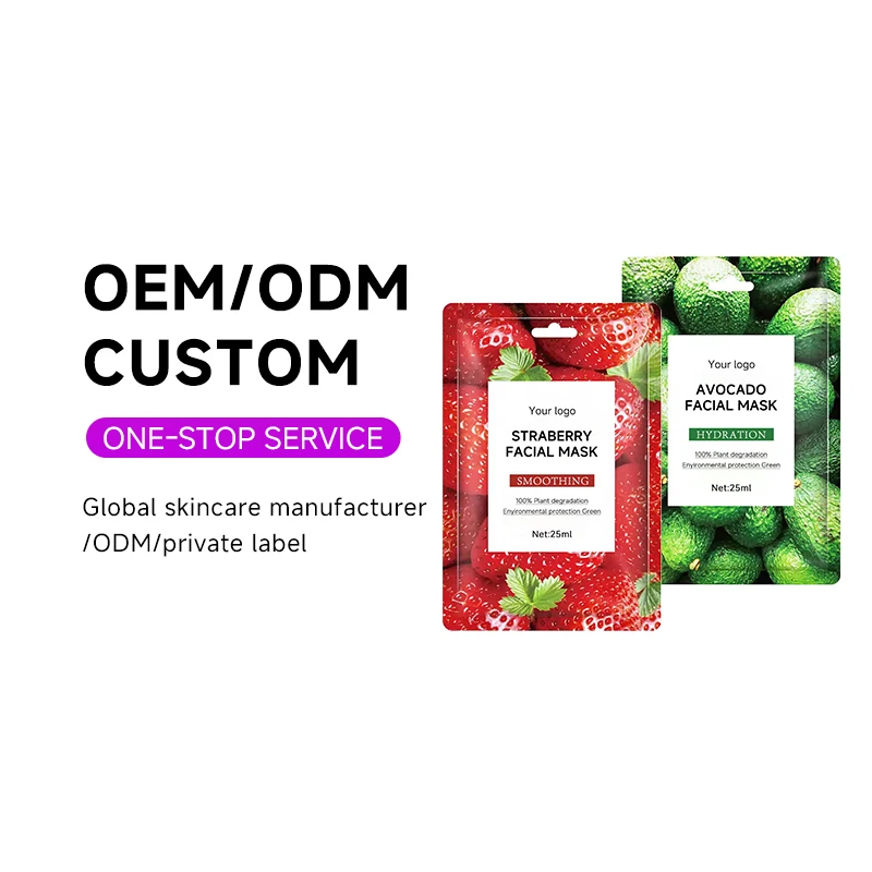 OEM ODM Skin Care Whitening Cream Strawberry Vitamin C E Sheet Hyaluronic Acid Facial Masks Organic Aloe Vera Moisturizing Mask