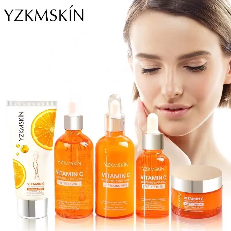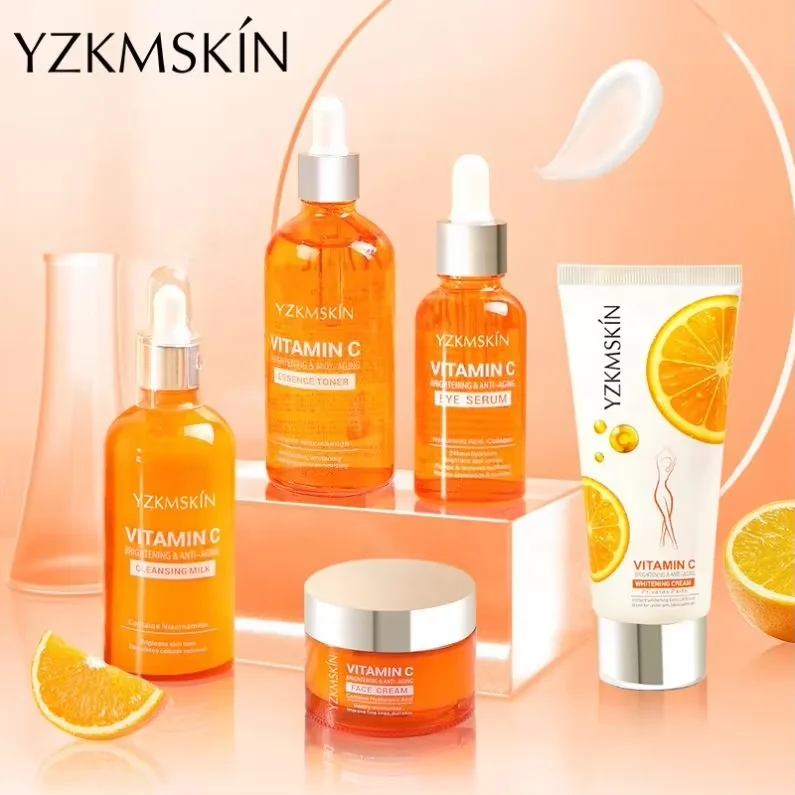 Private Label OEM ODM Natural Organic Skincare Set Moisturizing Hydrating Whitening Skin Cleansing 4 in 1 Vitamin C Facial Serum