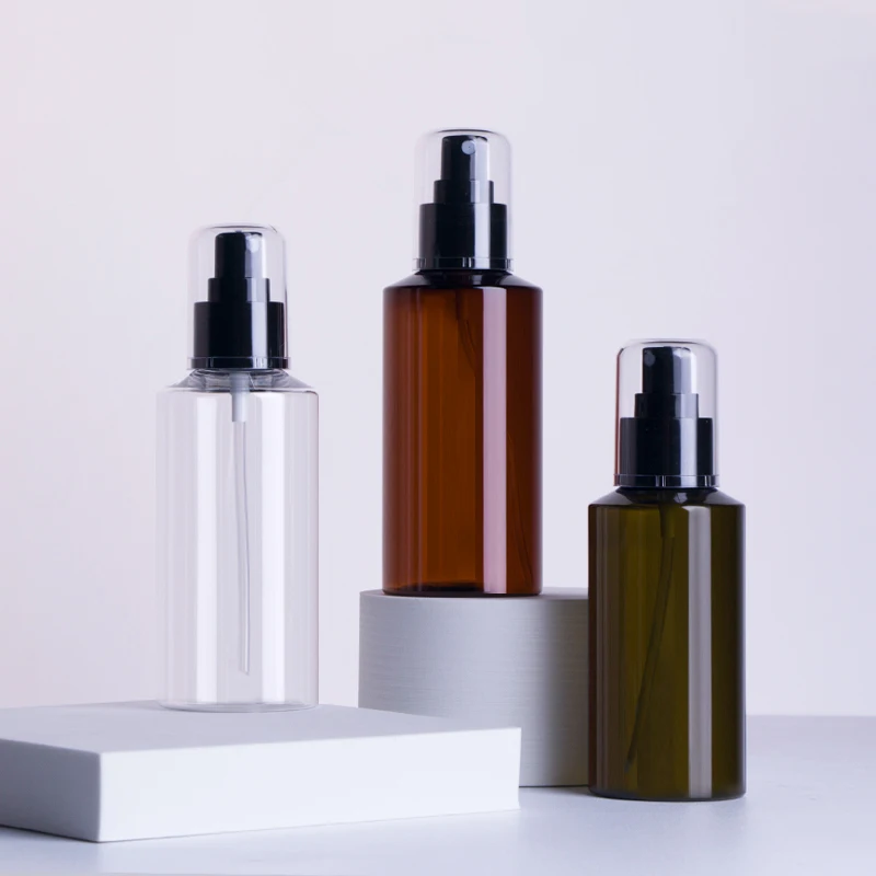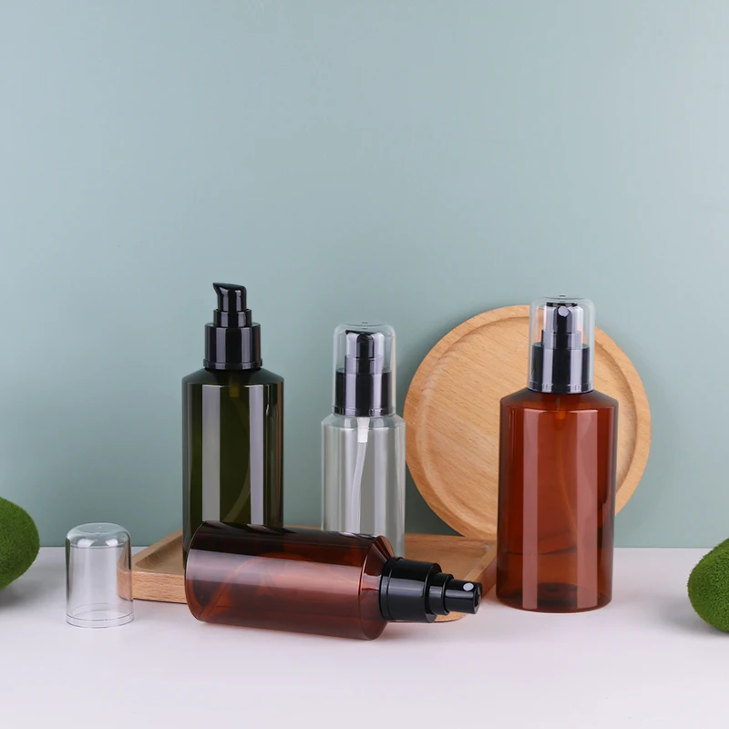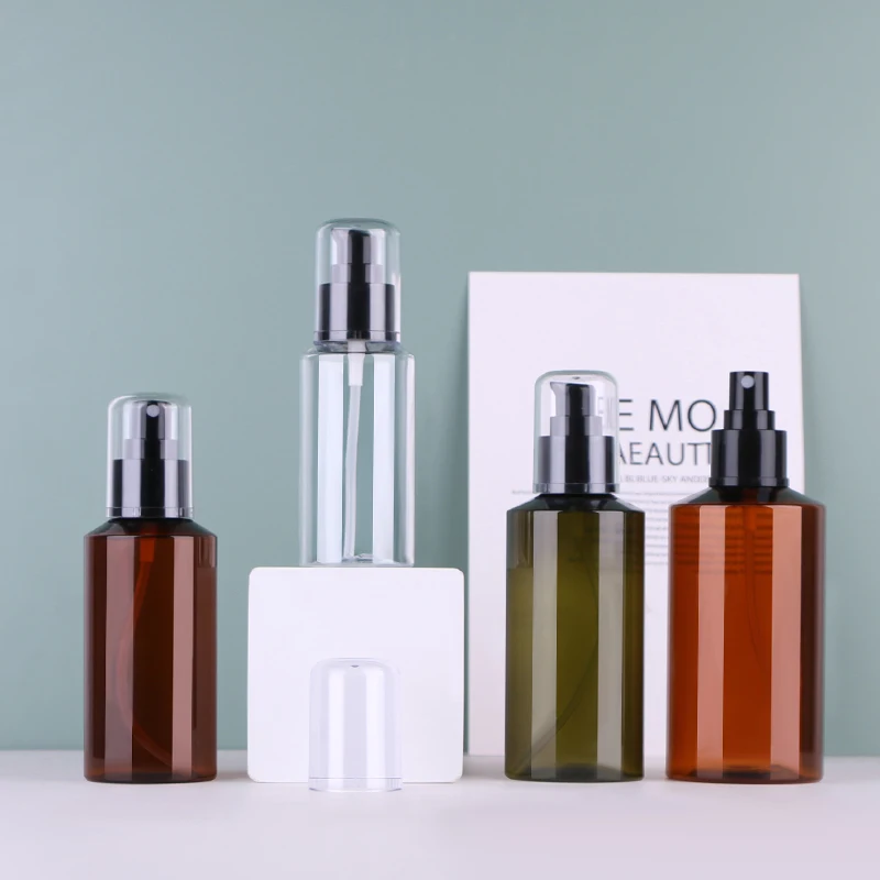 Hot Sale 200ml Cosmetic Packaging Green PET Plastic Body Lotion Bottle with Mist Spray Pump for Skin Care
